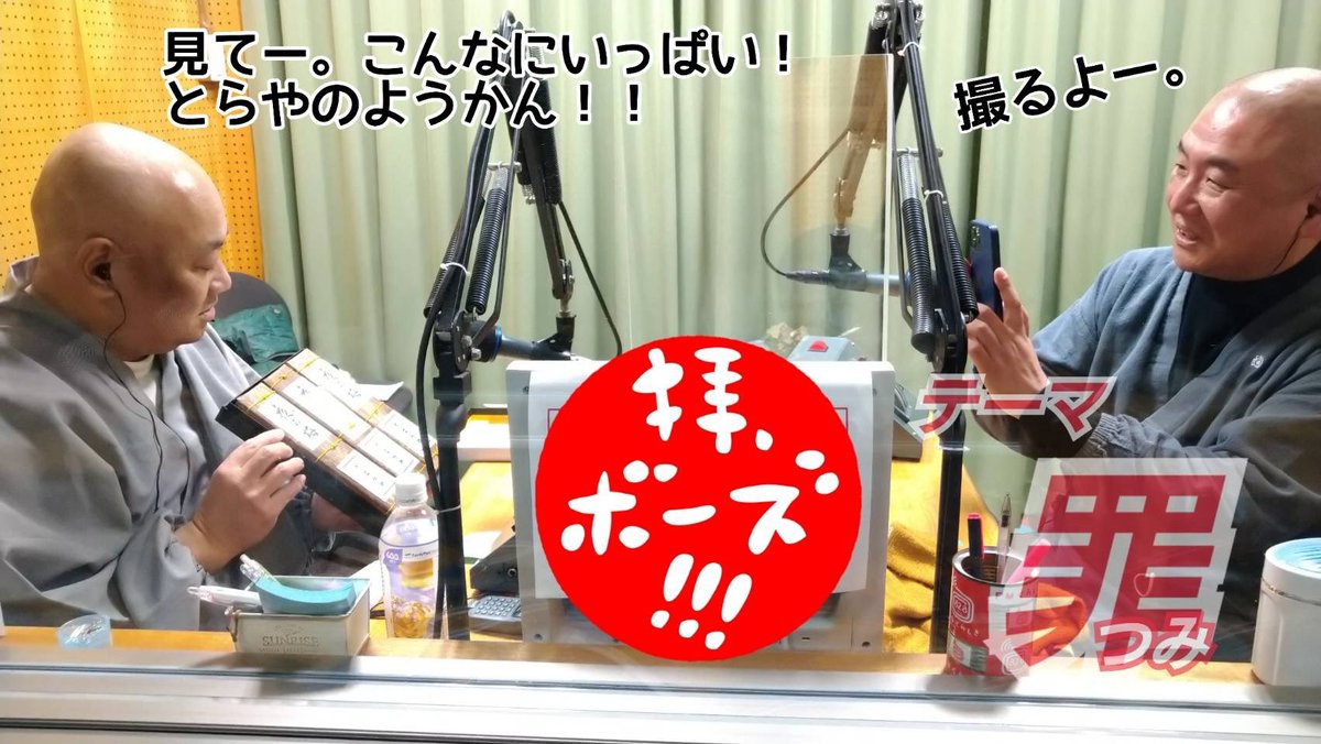 今夜は久しぶりのスタジオ収録でした。リスナーさんから『とらや』の差し入れをいただきテンションが上がりました!ありがとうございました! https://t.co/ifIc8cNV3z
