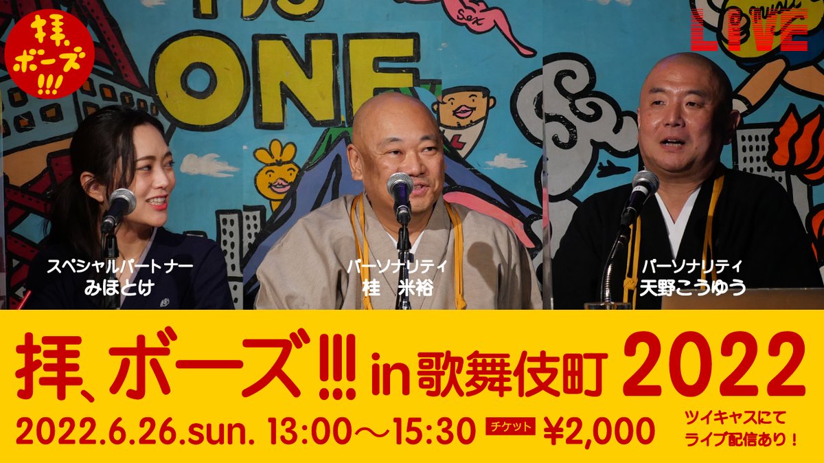 『拝、ボーズ!!! in 歌舞伎町2022~ちむどんどんスペシャル』 https://t.co/6VW7BdjMWQ https://t.co/zBcx9LP3xX